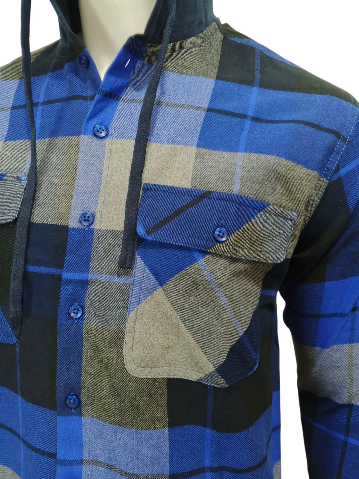 This royal blue checked flannel hoodie is designed for men, combining casual style with comfort. Featuring long sleeves, a hood, and a relaxed fit, it’s ideal for layering or wearing on its own during cooler days. Made from 100% cotton flannel, the hoodie is soft, breathable, and durable, providing warmth without compromising comfort. The vibrant royal blue check pattern adds a modern, stylish touch, making it suitable for casual outings, weekend wear, or outdoor activities.