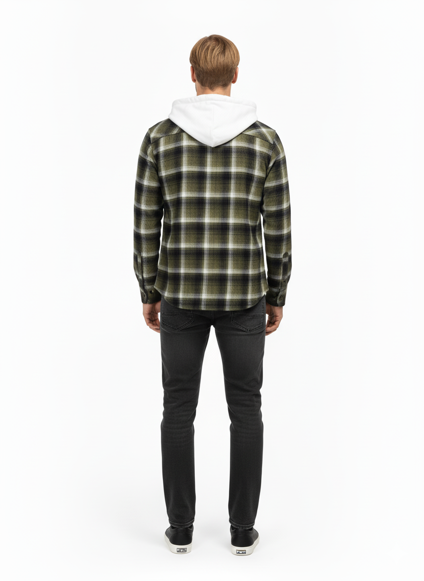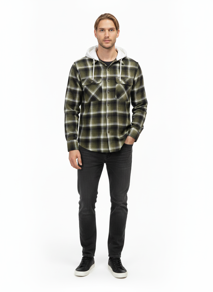 This olive and white checked flannel hoodie is designed for men, offering a perfect mix of casual style and comfort. With long sleeves, a hood, and a relaxed fit, it’s ideal for layering or wearing on its own during cooler days. Made from 100% cotton flannel, the hoodie is soft, breathable, and durable, providing warmth without compromising on comfort. The olive and white check pattern gives it a modern, versatile look, suitable for casual outings, weekend wear, or outdoor activities.