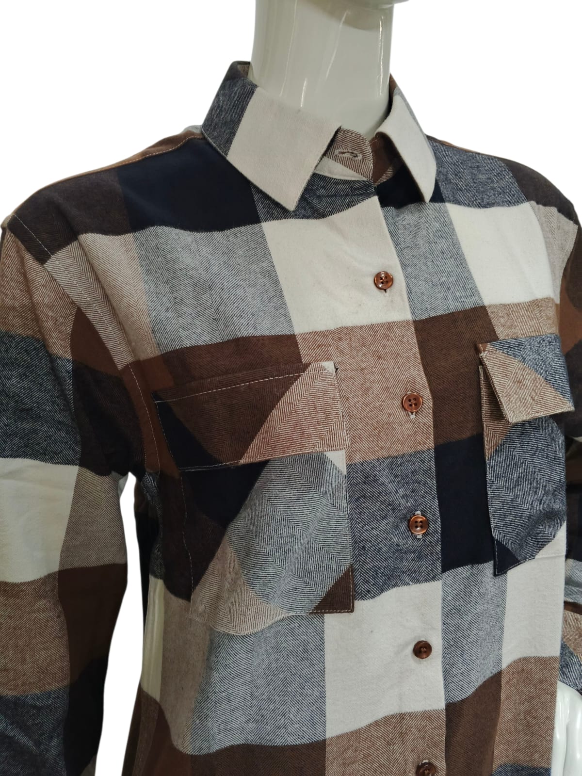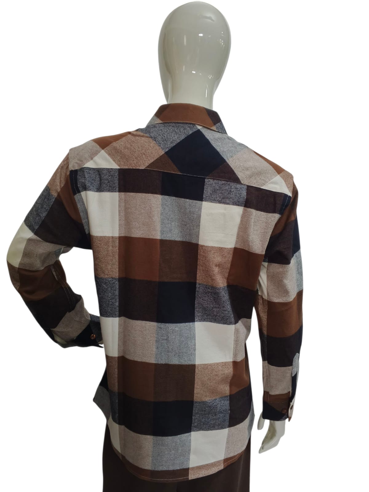 This red and coffee checked long flannel shirt is designed for women, combining style and comfort in a versatile piece. Featuring full sleeves and a longer length, it’s perfect for layering or wearing on its own. Made from 100% cotton flannel, the shirt is soft, breathable, and durable. The subtle gray and coffee check pattern adds a warm, classic touch, making it suitable for casual outings, office wear, or semi-formal occasions.