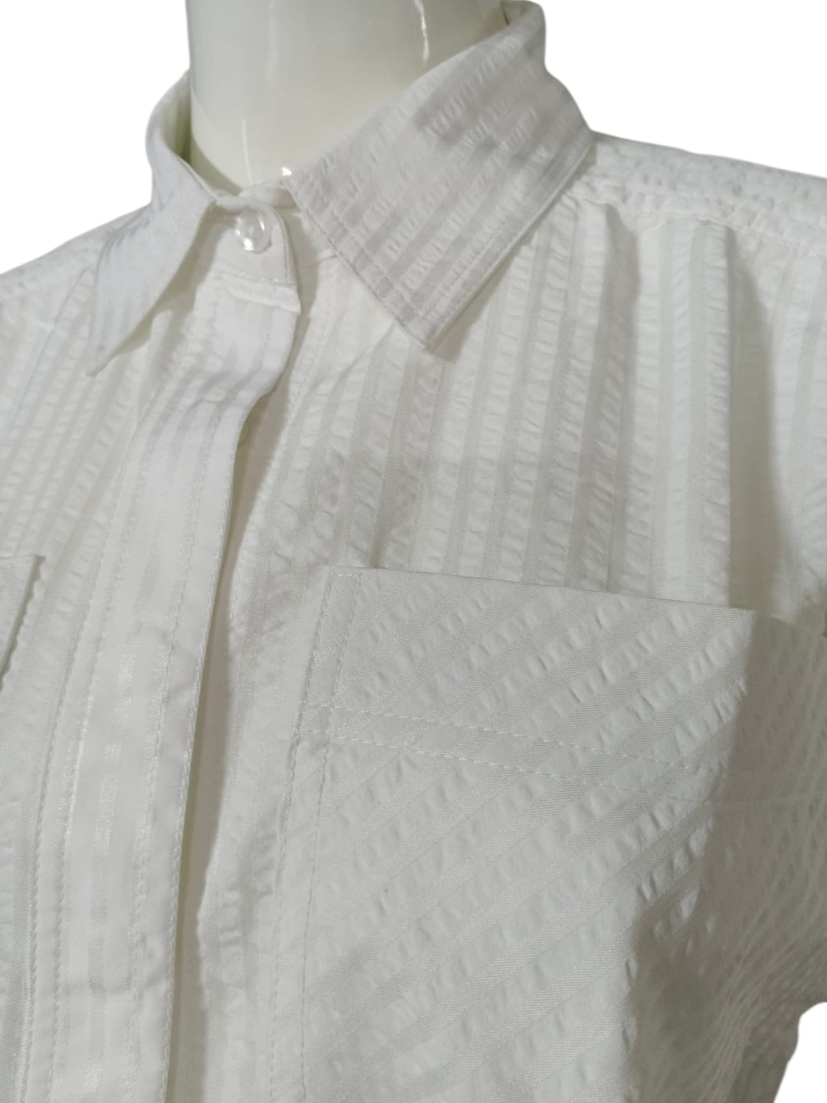 Upgrade your wardrobe with this stylish half sleeve white shirt designed for women. Its clean, crisp look makes it perfect for both casual outings and professional settings. Made from 100% polyester, this shirt is lightweight, comfortable, and easy to maintain, offering a polished appearance with minimal effort.