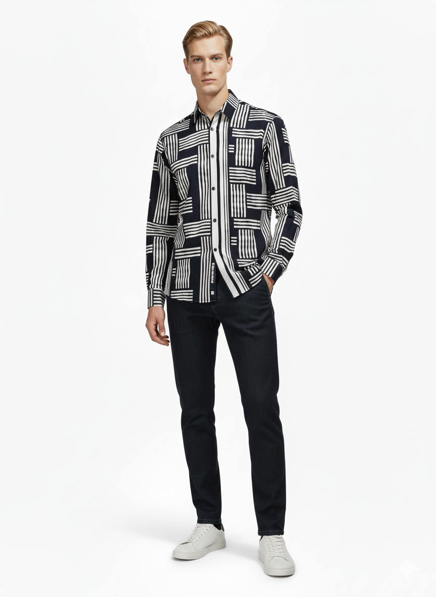 This black and white check full sleeve printed viscose shirt is designed for men, combining modern style with comfort. Made from 100% viscose, the shirt is lightweight, soft, and breathable, making it perfect for all-day wear. The classic black and white check pattern adds a timeless and fashionable touch, suitable for casual outings, office wear, or semi-formal occasions. Full sleeves provide a polished look, while the comfortable fabric ensures ease of movement throughout the day.