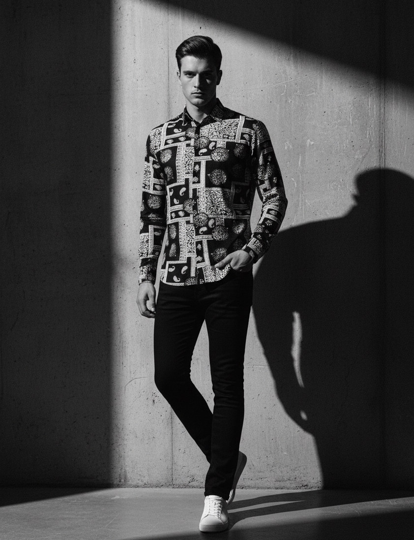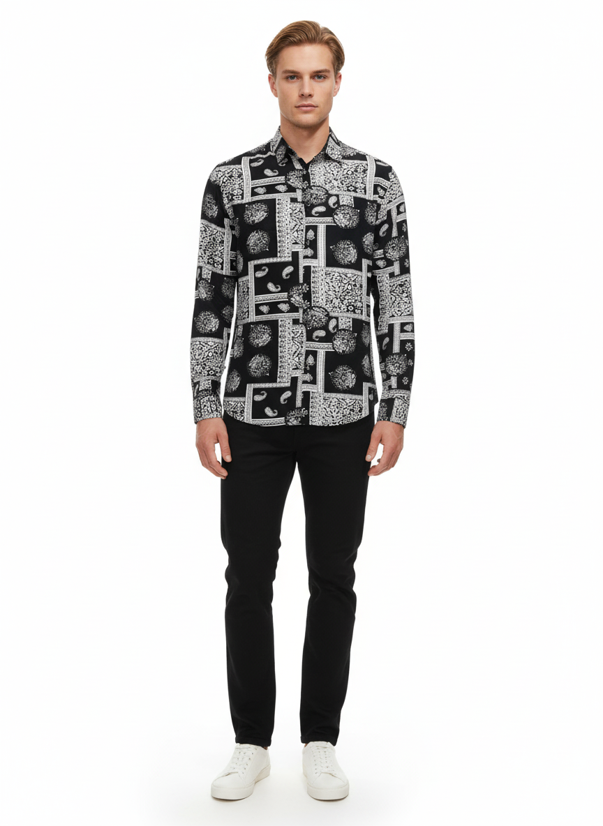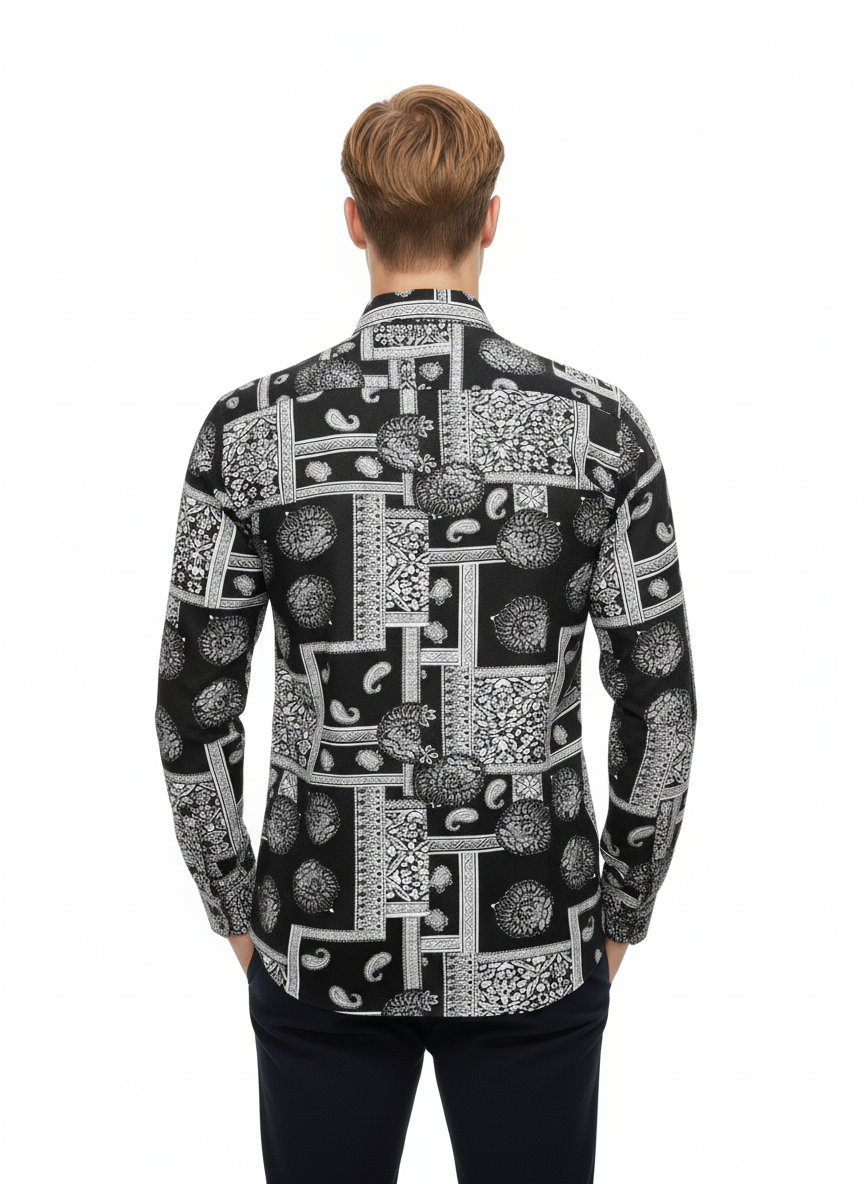 This black and white flower pattern full sleeve printed viscose shirt is designed for men, combining modern style with comfort. Made from 100% viscose, the shirt is lightweight, soft, and breathable, making it ideal for all-day wear. The classic black and white flower pattern adds a stylish and sophisticated touch, suitable for casual outings, office wear, or semi-formal occasions. Full sleeves provide a polished look while the comfortable fabric ensures ease of movement throughout the day.