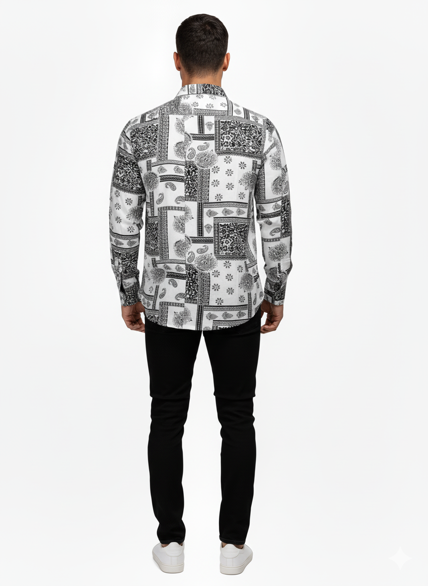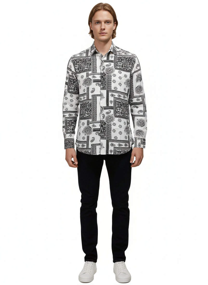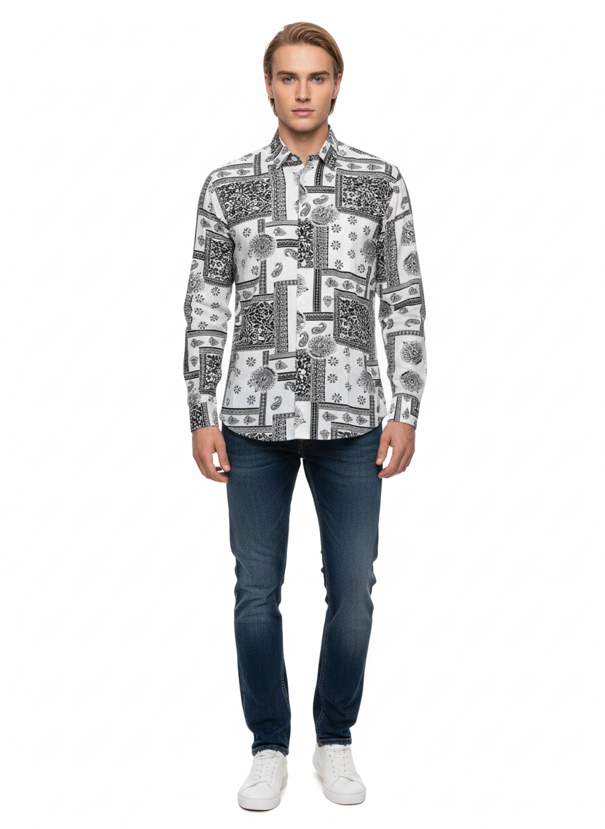 This white flower pattern full sleeve printed viscose shirt is designed for men, combining elegance with comfort. Made from 100% viscose, the shirt is lightweight, soft, and breathable, making it perfect for all-day wear. The stylish white flower pattern adds a modern and sophisticated touch, suitable for casual outings, office wear, or semi-formal occasions. Full sleeves provide a polished look while the comfortable fabric ensures ease of movement throughout the day.