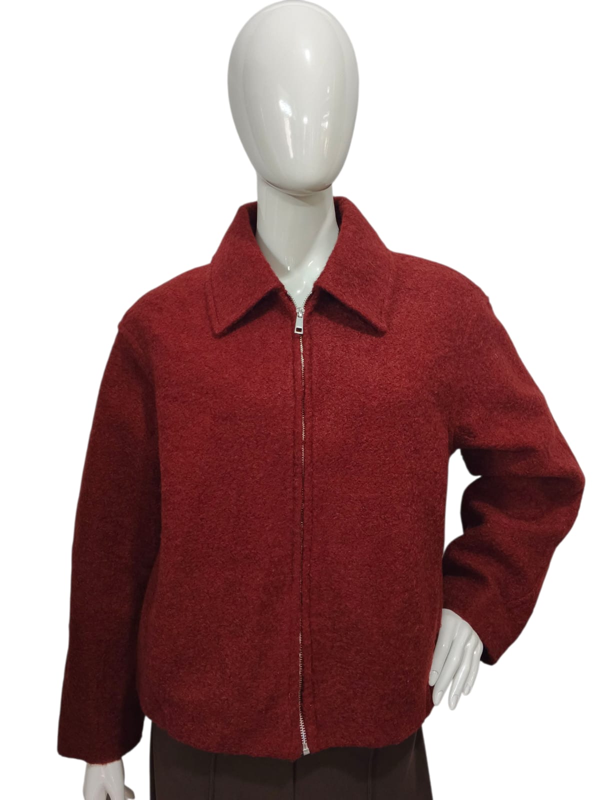 Stay stylish and comfortable with this elegant red long sleeve jacket designed for women. Perfect for casual outings or layering on cooler days, this jacket offers a sleek look with a modern fit. The vibrant red color adds a touch of confidence and charm to your outfit, making it a versatile addition to your wardrobe.