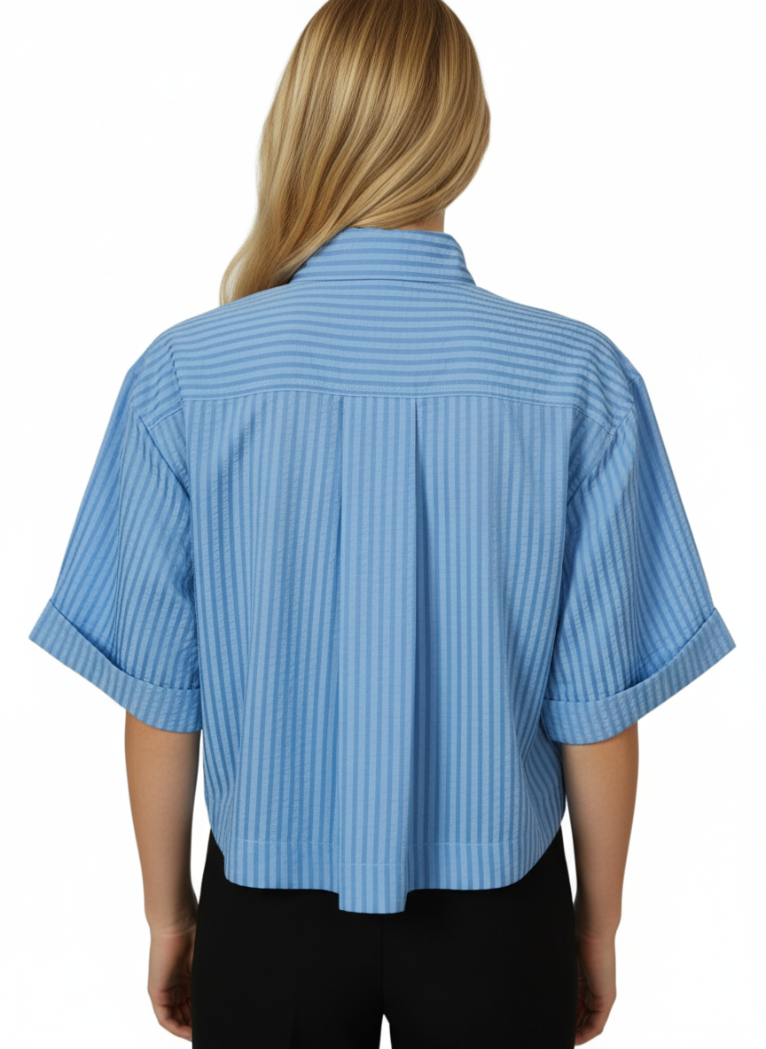 Elevate your wardrobe with this stylish half sleeve blue shirt designed for women. Its versatile design makes it ideal for casual outings, office wear, or layering with other pieces. Made from 100% polyester, this shirt is lightweight, breathable, and easy to maintain, ensuring comfort and a polished look throughout the day.