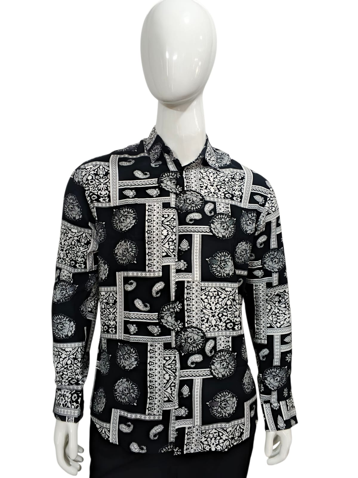 This black and white flower pattern full sleeve printed viscose shirt is designed for men, combining modern style with comfort. Made from 100% viscose, the shirt is lightweight, soft, and breathable, making it ideal for all-day wear. The classic black and white flower pattern adds a stylish and sophisticated touch, suitable for casual outings, office wear, or semi-formal occasions. Full sleeves provide a polished look while the comfortable fabric ensures ease of movement throughout the day.